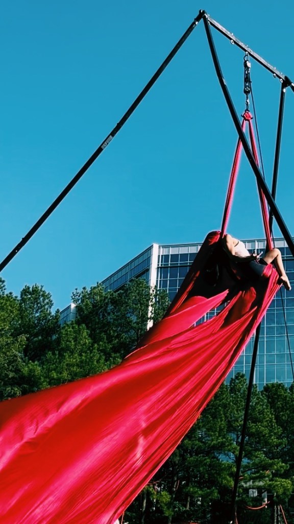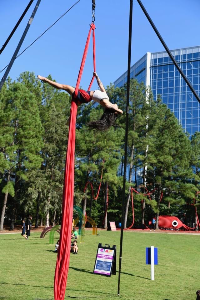 Post Ricochet we went right into Charlotte International Arts Festival- a beautiful festival w/ art installations, concerts, performances, etc – all types of art from all over – on display in various areas of Charlotte for like over two weeks. Our participation was a two weekend engagement that included 5 shows a weekend– that’s 10 total shows! Ten times performing the same act, that by the way, was made in two days given the madness of everything lately!