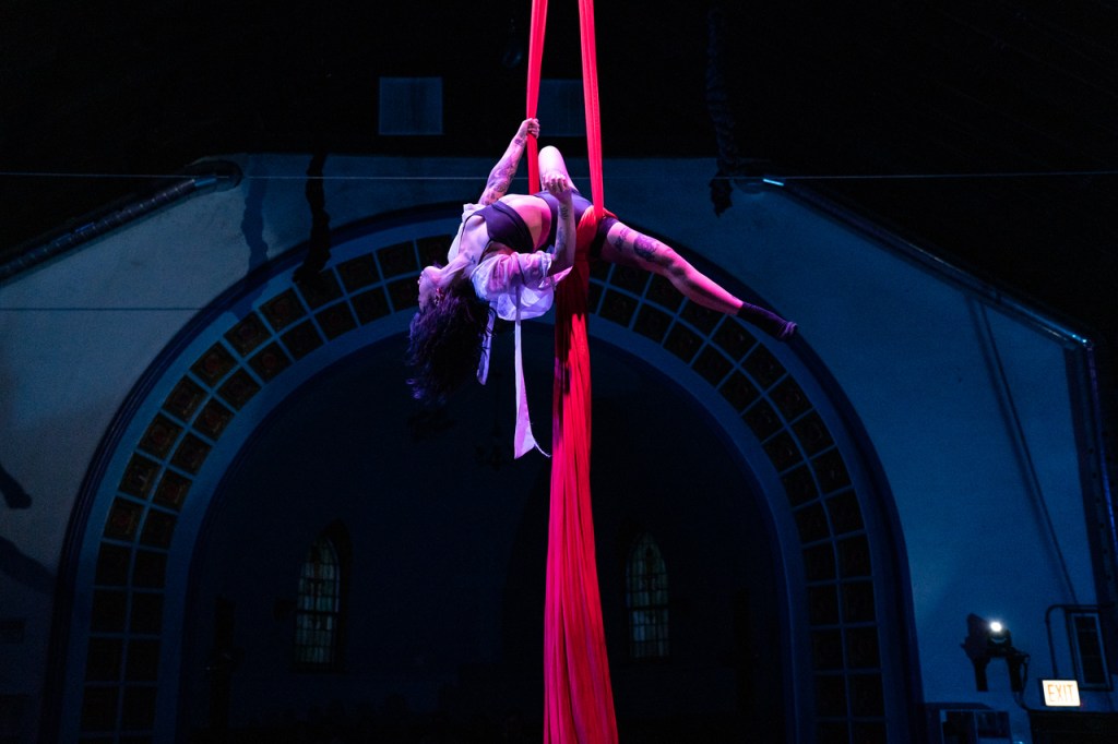 My act was to “Darling Nikki” on the silks- it was fun to take a break from some of the heavier subject materials we’re accustomed to tackling and dive into all the energy, fun, chaos, and sensuality that is Prince.